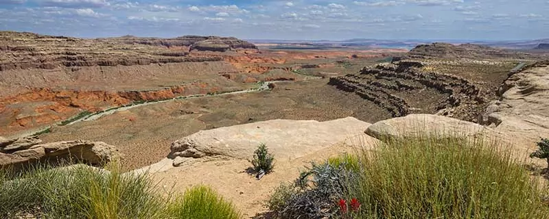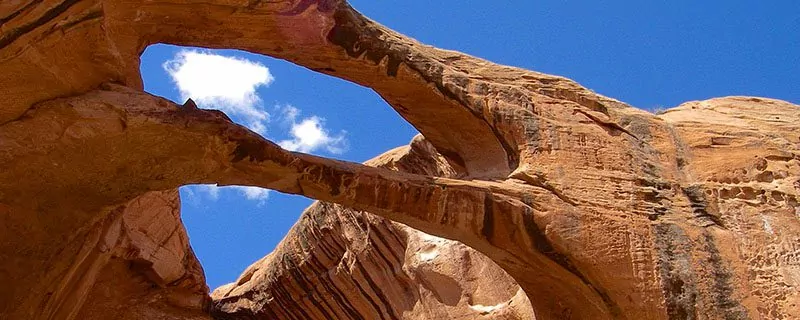 Here we’ll begin our hike north, retracing a historic wagon route further up canyon, beyond a scenic overlook. While today’s hike is long, the forgiving terrain will make it easy to take in the scenery. We will enjoy the serene vistas and unique geology as we hike up the serpentine canyon. We will also find one of the most impressive (yet seldom visited) geologic features in the American Southwest: stunning natural bridge. It is a spectacular, 120-foot-wide double arch – one arch perched atop another – and one of just a hand full of such rock formations in the world.
